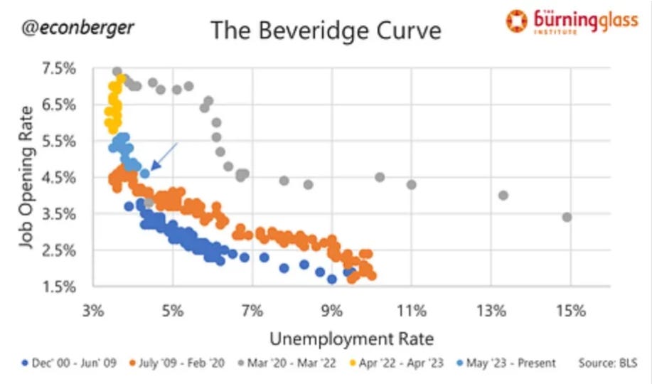 The Beveridge curve is now a mainstream topic of discussion, and the fear is falling openings would put us at a place where the unemployment can rise rapidly as layoffs would be next.