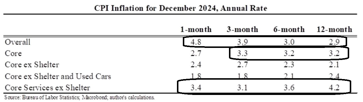First of all, let’s start with what we are dealing with in the data. The below chart is from Harvard Economist Jason Furman and I circled a few measures’ run rates to basically show that inflation is sticky and nothing to be excited about.
