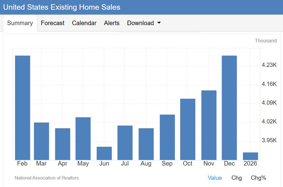 Existing home sales were sharply negative on the month, and unwound a number of months of gains. Most people are attributing this to bad weather, which was historically cold and with heavy snowfall. Considering I didn’t leave my house for a few days in that period, I can imagine home shopping took a backseat for many.