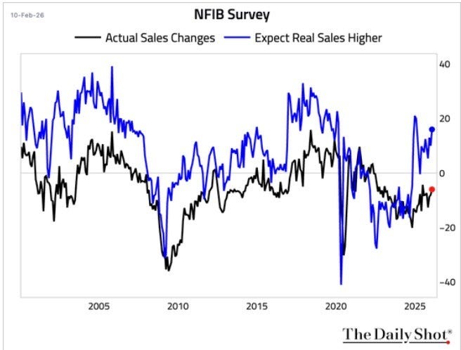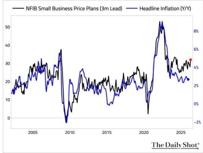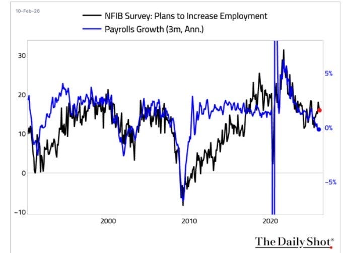 The first data we received was one I always look closely at, the NFIB Small business optimism survey. While little changed this month on the headline, the components tell the story. Hiring plans continue to point to an improvement in NFP ahead. Pricing plans continue to point to higher inflation ahead. Expectations for higher future sales had a notable pick up. All of these dynamics are more consistent with early than late cycle behavior, in line with the cyclical reacceleration theme I outlined in my macro outlook note.