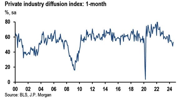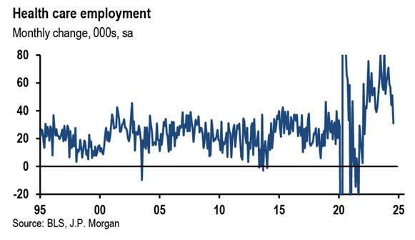 Headline jobs bounced back from the prior month, but the story was mostly the same. Private sector breadth is narrow. One of the leading hiring sectors has been healthcare, and both this and government payrolls were lower by 30k each. Something to think about as possibly there could be upside ahead if they return to the prior pace, or perhaps we’re settling into a new and lower pace.